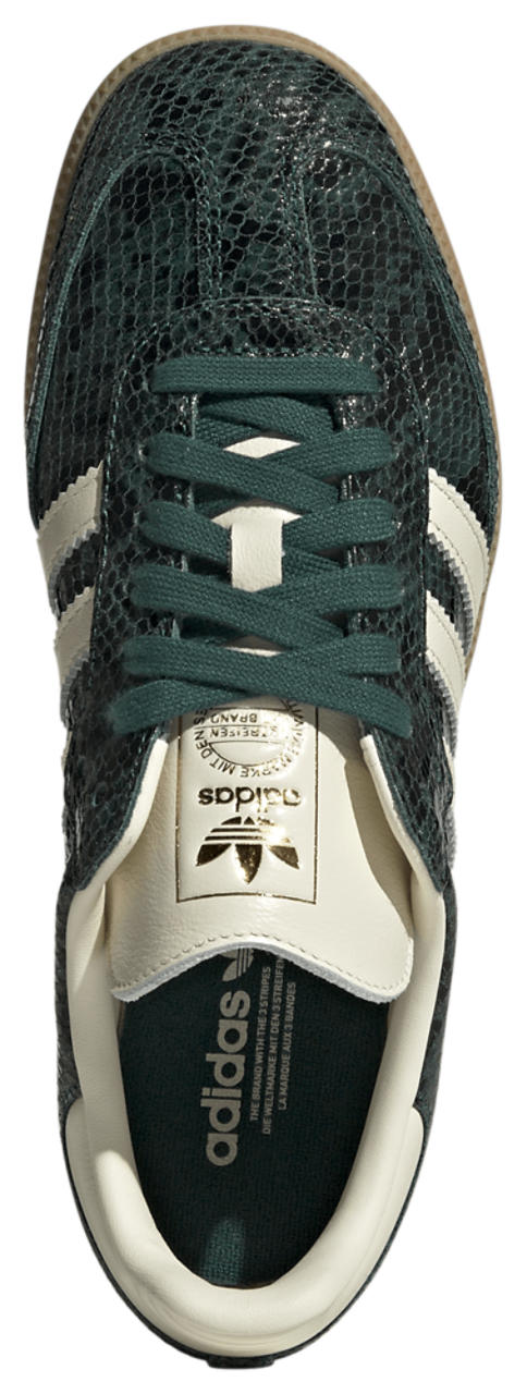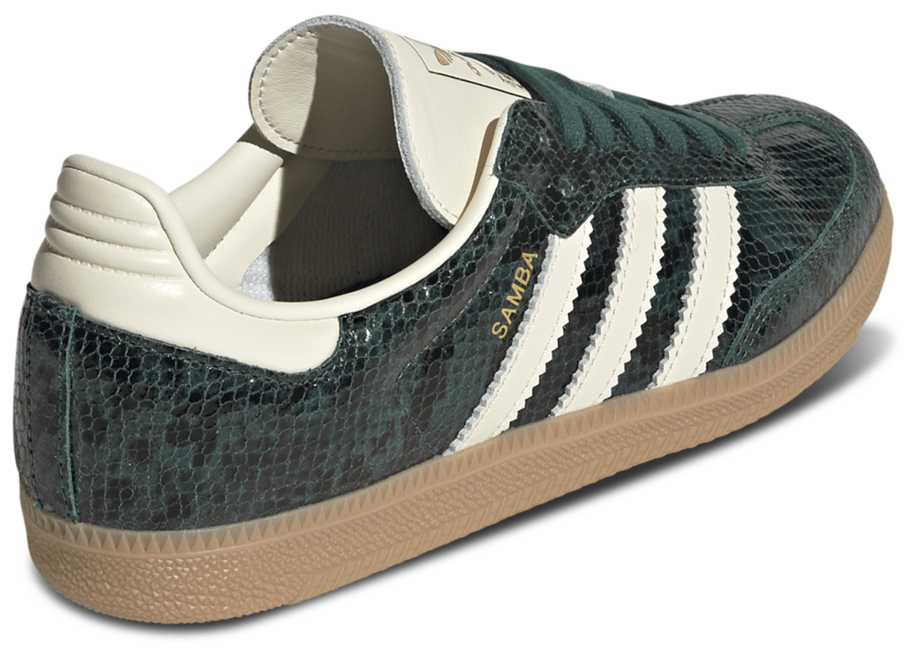 From icy pitches to city streets, the adidas Originals Samba remains a timeless icon of performance and style. Designed for lifestyle wear, these iconic sneakers feature a snakeskin-look leather upper and overlays that add a touch of sleek sophistication to your fit. The gum rubber outsole and reinforced T-toe provide enhanced durability and vintage charm. The serrated 3-Stripes add adidas style for a look that will always be original. Take on your everyday adventure with confidence and OG football style with the adidas Originals Samba.