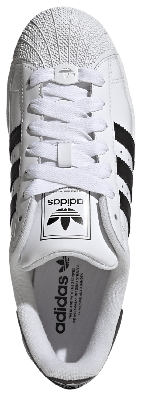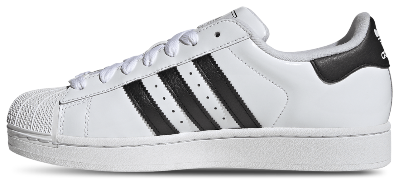 Score major style points and ball out with timeless cool in the adidas Originals Superstar II Patent. For over 50 years, these Superstar shoes have been a staple for icons in sports, music, and culture, constantly evolving while staying true to their basketball roots. The patent-leather and rubber upper with a shiny finish offers a sleek, polished look, and the serrated 3-Stripes add a signature touch. Featuring a soft terry lining and a distinctive rubber shell toe, these hardwood heroes-turned-streetwear sneakers deliver unbeatable comfort and iconic style for everyday wear. Step up your game and shine like a star with the adidas Originals Superstar II Patent.