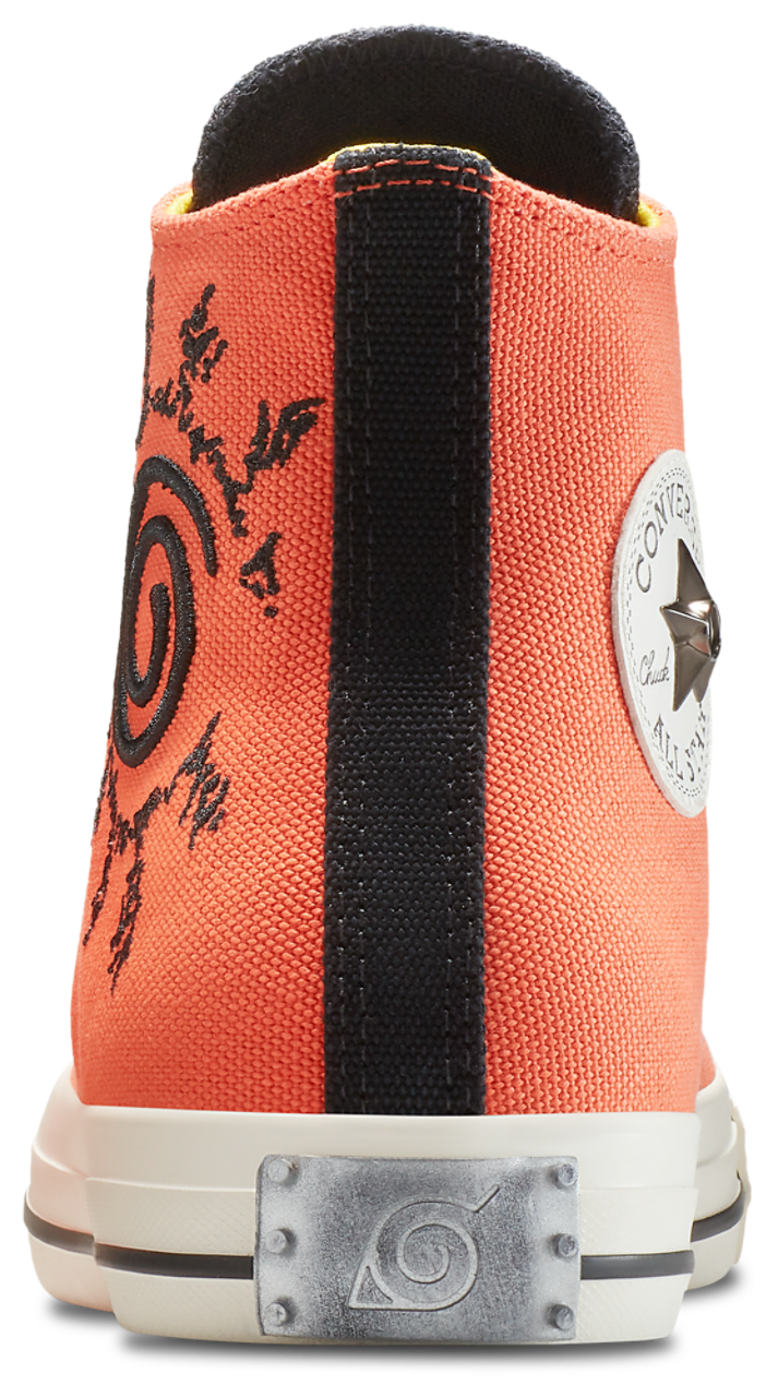 “Believe it!” Lace up and chase greatness with the Converse X Naruto CTAS Hi. Inspired by Naruto Uzumaki, these custom-designed sneakers bring the classic Chuck Taylor silhouette to life with bold colors and striking graphics. The full-print sock liner and a unique embroidered graphic on the lateral side add a distinct touch. The custom star jewel on the Chuck patch delivers signature ninja style that truly sets these sneakers apart. Elevate your sneaker game and carry the spirit of the Hidden Leaf Village wherever you go with the Converse X Naruto CTAS Hi.