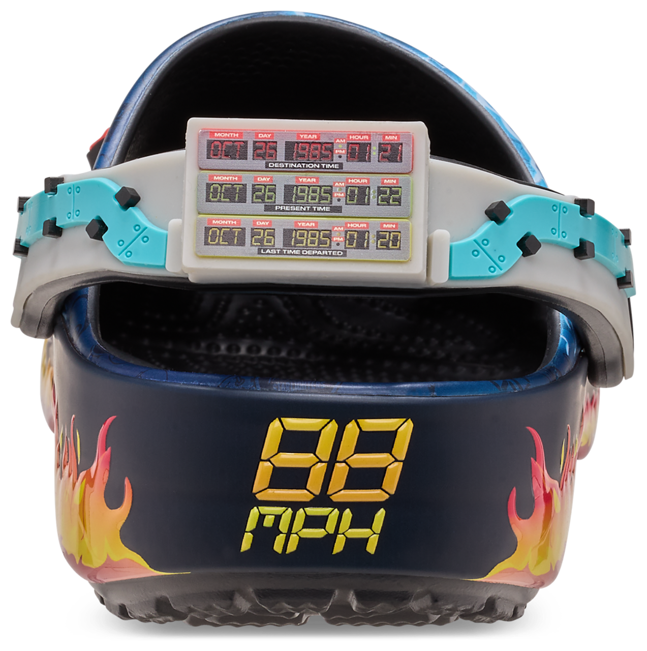 Celebrate the 40th Anniversary of Back to the Future in style with the Crocs Back to The Future Classic Clogs! These nostalgic Classic Clogs feature time-splitting lightning bolts and flame-covered outsoles, decked out with Back to the Future inspired Jibbitz charms. The backstrap is equipped with the iconic Time Circuit and Flux Capacitor seen on the back of the Time Machine. You’ll want to grab the timeless Crocs Back to The Future Classic Clogs before the clock runs out.