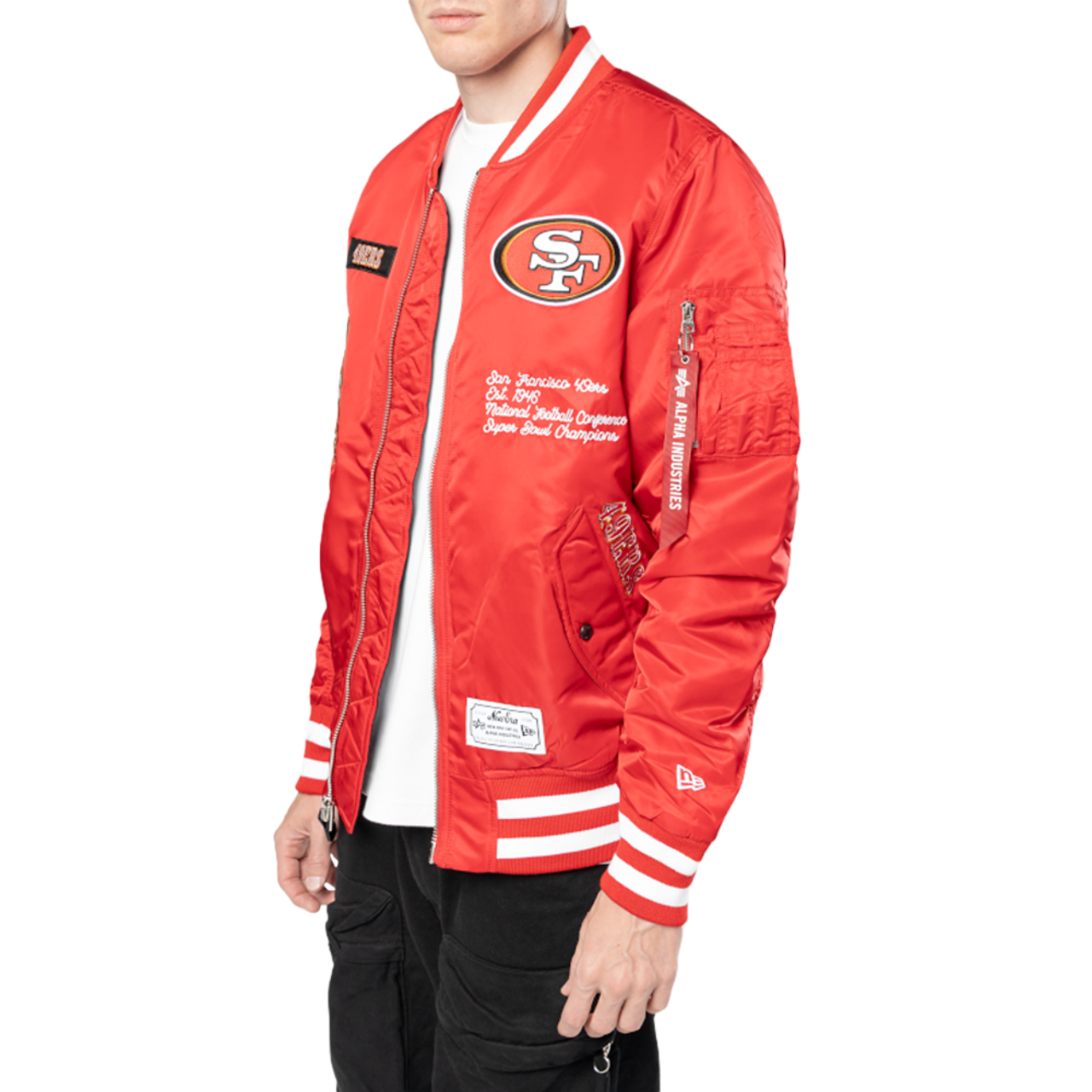Wear the San Francisco 49ers legacy and own the day with the New Era 49ers Alpha Jacket. Featuring lightweight nylon fabric, this jacket offers ultimate comfort and movement all day long. Stay warm and make a statement with the New Era 49ers Alpha Jacket.