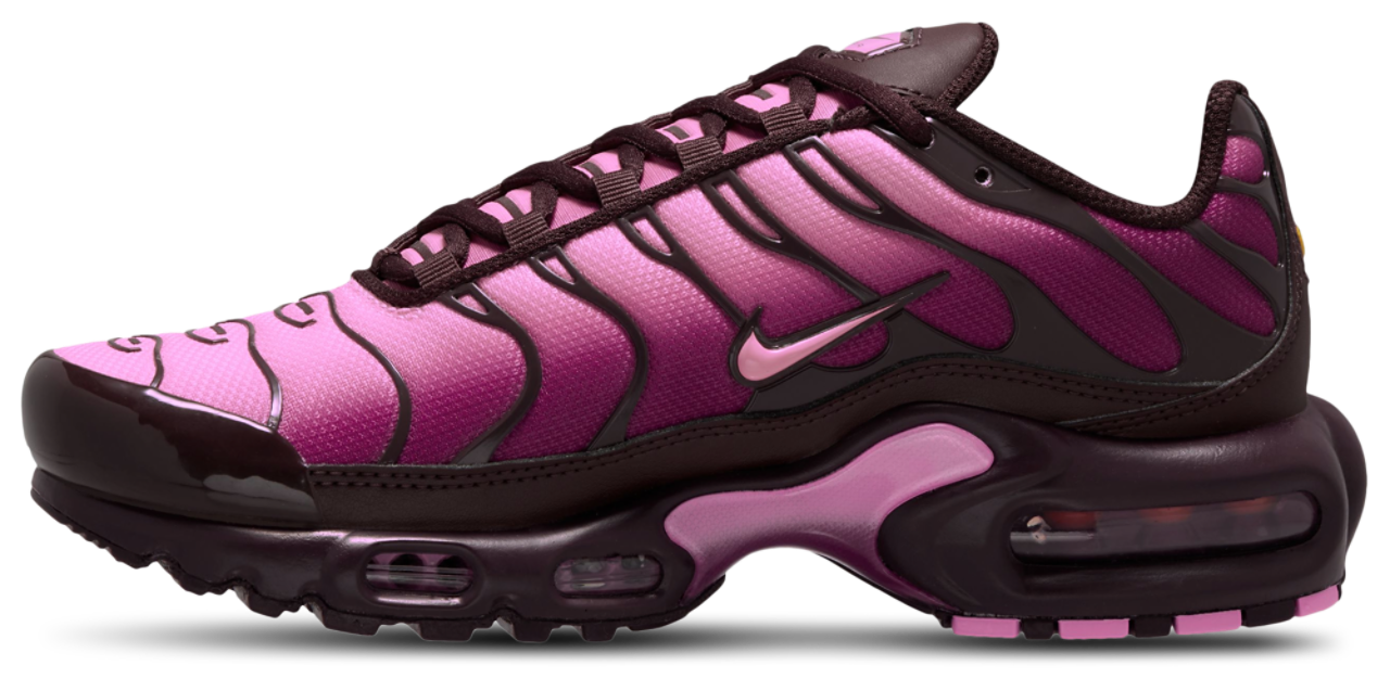 The Women’s Nike Air Max Plus is one of the most iconic models in the Nike Air Max family. First released in 1998, the Air Max Plus was instantly notable for its eye-catching design and futuristic, technical construction. Originally featuring gradient color fades paired with wavy TPU stripes across the silhouette, the eye-catching look continued with the sole unit, which debuted Nike’s Tuned Air technology, a more stable version of Air Max with support pillars in the Air unit. Most famous for its initial Tiger and Shark colorways, the silhouette has been featured in countless new color combinations, graphic patterns, and materials in the years since, further cementing it as one of the most beloved Air Max models ever.