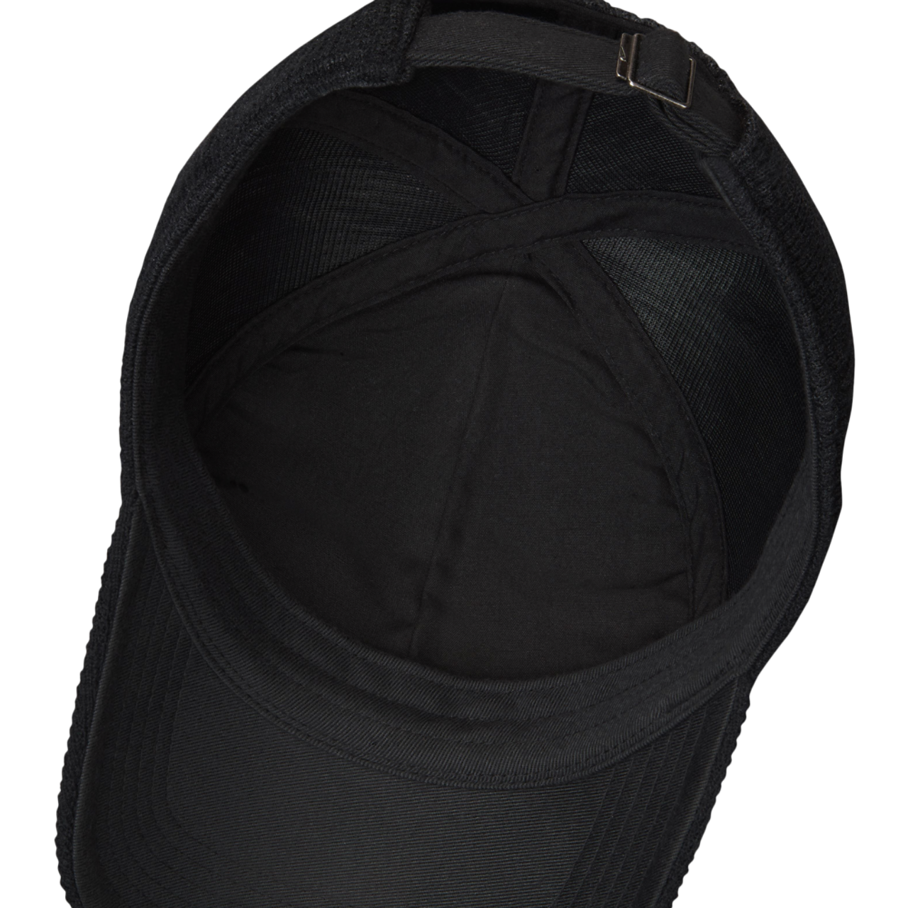 • Sweatband with a metal tri-glide allows an adjustable fit.
