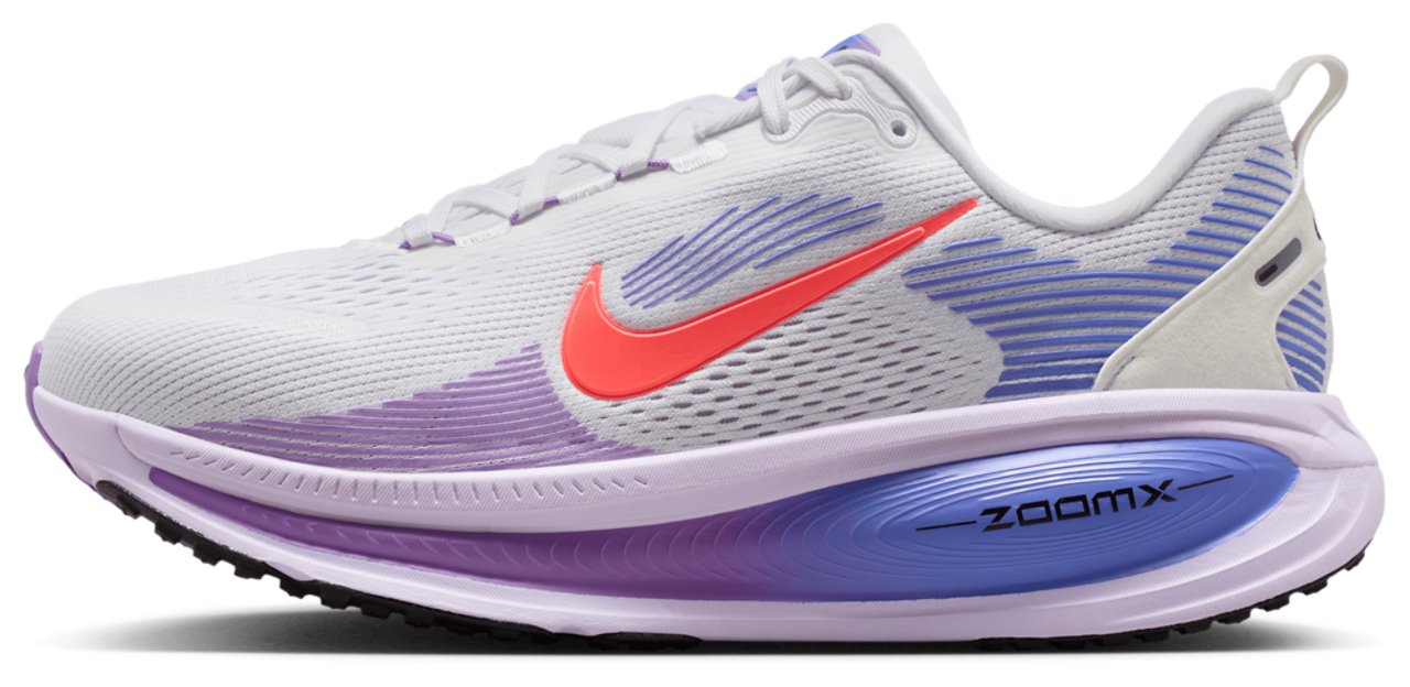 Performance powerhouse! Optimise your daily run with the Nike Vomero 18. Featuring a new dual-density midsole with ZoomX foam stacked on top of ReactX foam for a comfortable ride, these upgraded shoes let you push boundaries and run beyond limits. The engineered mesh upper keeps you feeling soft and cool with every giant leap, while the plush tongue and lining wrap your feet in added snugness. Offering maximum cushioning and comfort, the Nike Vomero 18 ensures your every stride is a step towards running greatness.