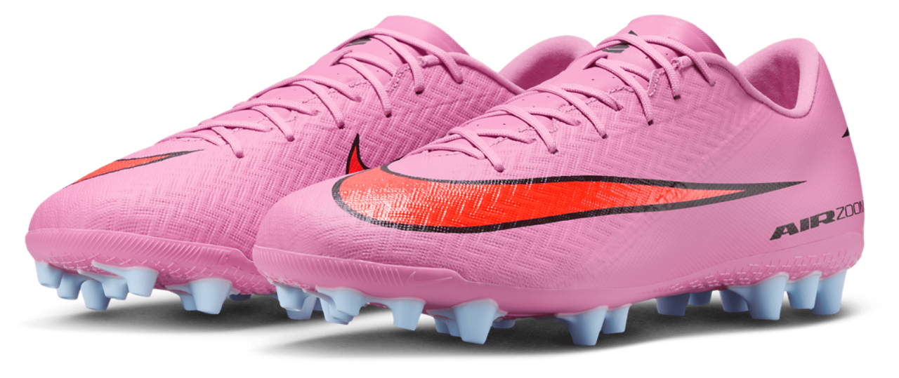 Ready to take your speed into overdrive? The Nike Zoom Vapor 16 Academy AG is built for the bold, the fast, and the unstoppable. Anything but ordinary, these cleats are enhanced with an improved heel Air Zoom unit that gives you the propulsive feel needed to break through the back line. The upper is made of NikeSkin with embedded chevrons, providing reliable ball control and a barefoot-like feel. The innovative wave-like traction pattern, merged with evolved chevron and blade studs, maximizes surface engagement and grip. Lace up the Nike Zoom Vapor 16 Academy AG to fly past defenders with superior speed and agility.
