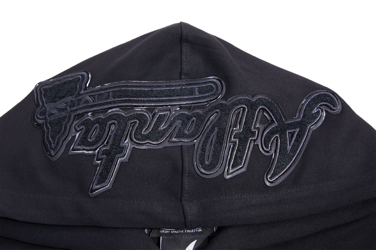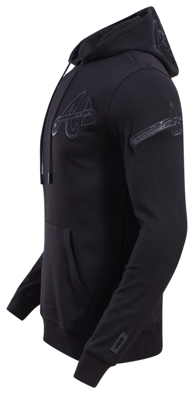 All black, all bold! Rock the Pro Standard BRAVES TRIPLE BLACK DK PO HOODIE and turn heads from the streets to the stands. Crafted with soft cotton and polyester, this pullover hoodie offers exceptional comfort and durability for all-day wear. The long sleeves add coverage and warmth, while the spacious front pouch pocket provides space to stash essentials and keep your hands toasty. Up your Atlanta Braves style and make a striking statement with the Pro Standard BRAVES TRIPLE BLACK DK PO HOODIE.