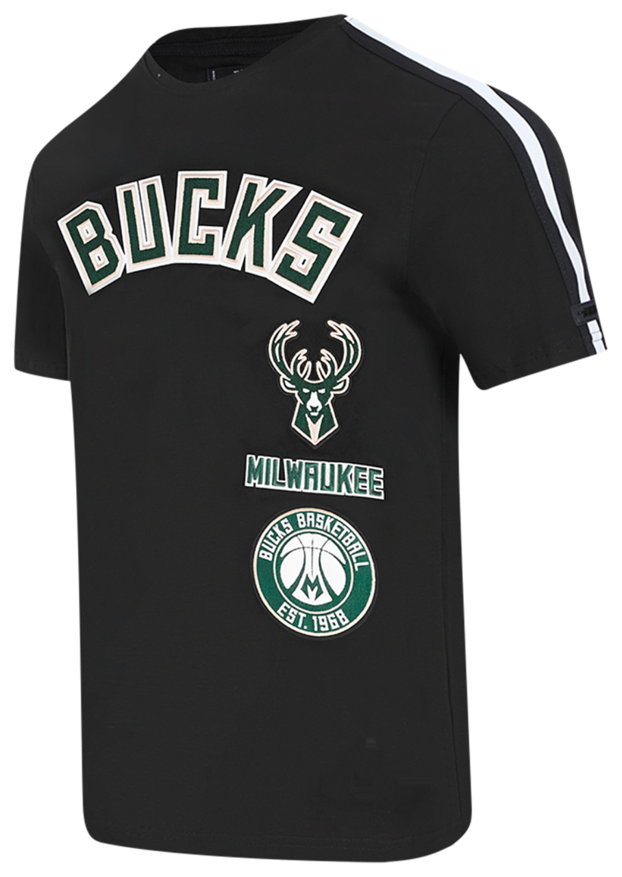 Suit up like a champion! The Pro Standard BUCKS RETRO CLASSIC SJ STRIPED TEE is for fans who bring passion to every play and pride to every moment. Featuring bold striped details, this short-sleeved T-shirt reimagines classic Bucks style with a fresh, sporty edge. The cotton-blend fabric and crewneck ensure all-day comfort, whether you’re courtside, hitting the streets, or celebrating another big win. Through every dunk, every cheer, every game, the Pro Standard BUCKS RETRO CLASSIC SJ STRIPED TEE fuels your fandom like never before.