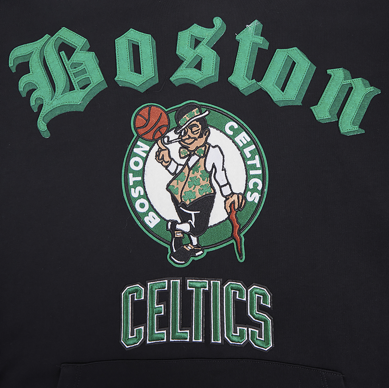 From game day to off-duty days, the Pro Standard CELTICS OLD ENGLISH FLC PO HOODIE is a must-have for any true Celtics fan who knows that comfort and style never go out of bounds. Sporting a front pouch pocket, this long-sleeved pullover hoodie keeps your essentials secure or your hands warm while you celebrate every Celtics win. Stay comfy and claim your spotlight in the fan crowd with the Pro Standard CELTICS OLD ENGLISH FLC PO HOODIE.