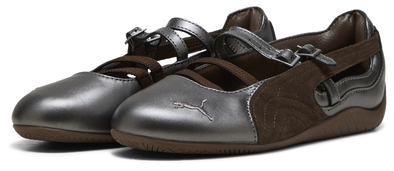 Luxury personified! Glide through your day with the PUMA Speedcat Ballet Lux, where ballet elegance meets racing DNA. Inspired by motorsport heritage and reimagined for everyday moves, these silhouettes let you take over the streets with a unique blend of speed, precision, and grace. The metallic upper and signature Formstrip add a bold, eye-catching look. Plus, the elastic bands and delicate embroidered details bring a ballerina-inspired finish, perfect for nailing that chic, modern look. Embrace the fusion of heritage and contemporary style with the PUMA Speedcat Ballet Lux.