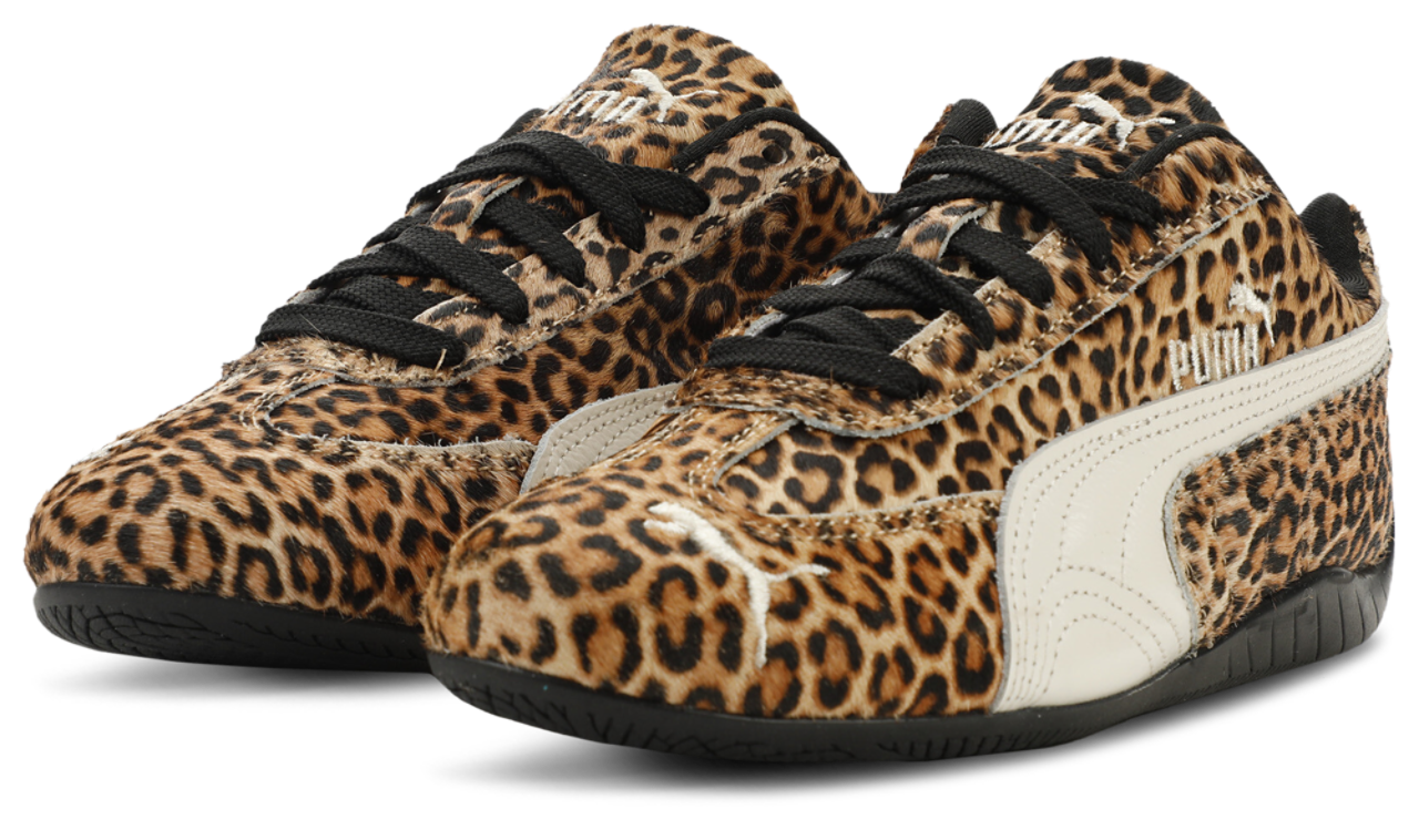 Conquer the urban jungle in style with the PUMA Speedcat Leopard. A beast of texture, comfort, and detail, these sneakers feature a pony hair leather base, suede Formstrip, and suede eyestay for a sophisticated look. The closed mesh sockliner with screen-printed PUMA branding keeps your stride stealthy, comfy, and fierce. The pony hair leather overlay on the toe and heel lets you prowl through the streets with raw elegance. The suede tongue with debossed PUMA branded logo seals your look with an untamed signature style. Flaunt your wild side of fashion with the PUMA Speedcat Leopard.
