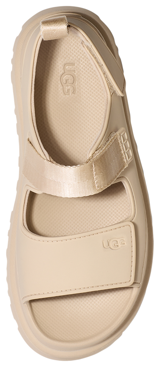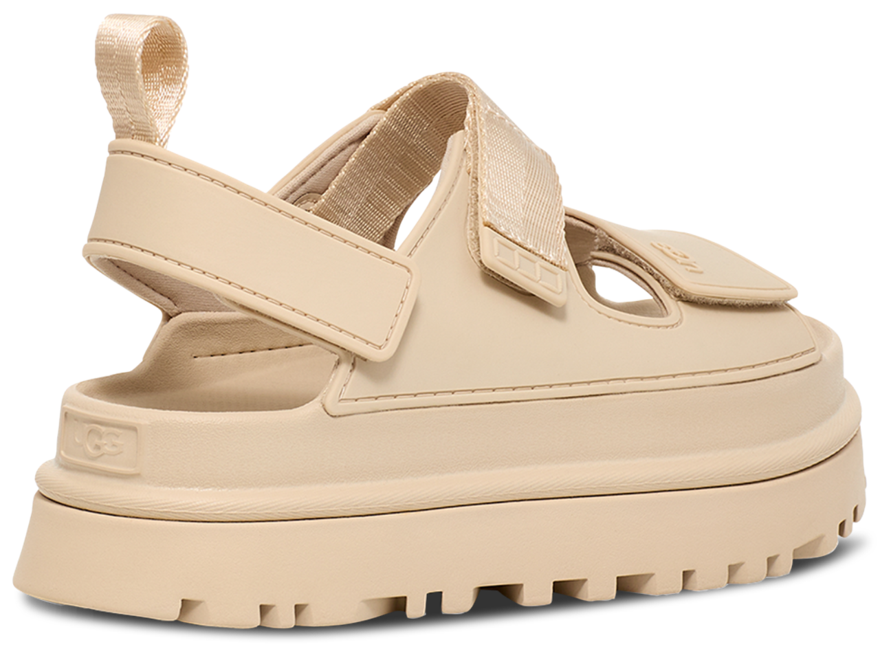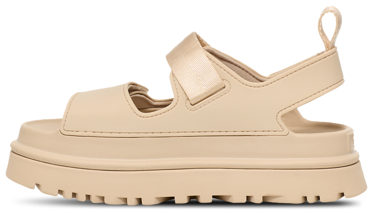 The UGG Goldenglow is the comfy-chic pair of UGGs that fits all your casual looks. More than a fashion statement, these UGGs are a statement of purpose. They reflect your commitment to the planet in every detail. The upper textile lining and quarter-strap webbing? Made with 100% recycled polyester fibers, ensuring your comfort comes guilt-free and every step leaves a lighter footprint. Decked out in an easy slip-on design with a hook and loop closure, these UGGs are bound to be your casual favorites. Step into sustainable comfort and style with the UGG Goldenglow.