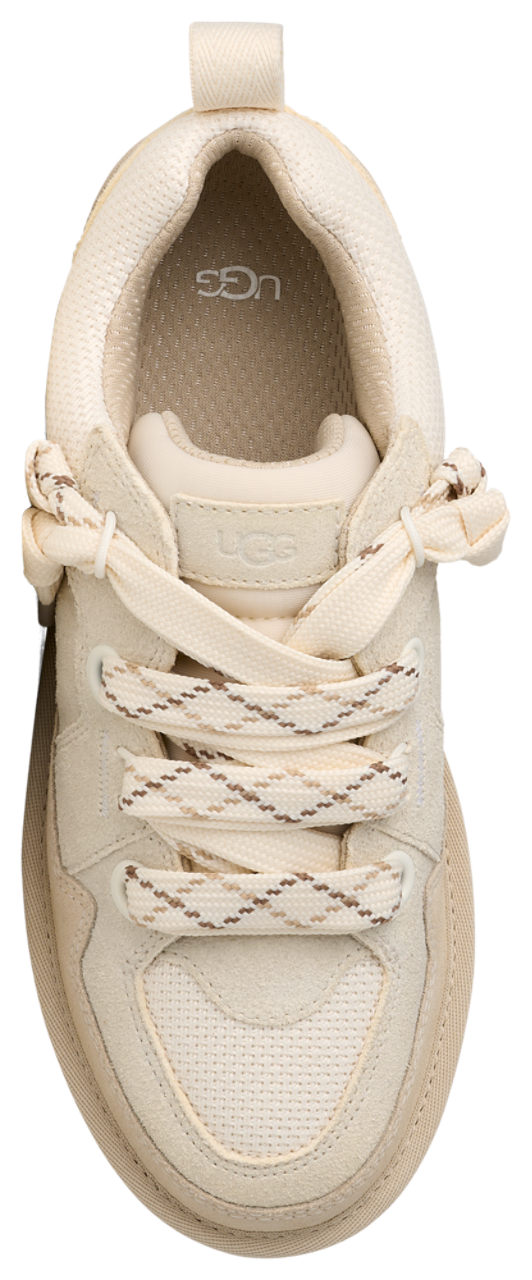 Slip into the UGG Lo Lomel and rock that laid-back, luxe look. Combining the ease of a sneaker and the comfort of a slipper, these shoes are all about bringing good vibes your way. Featuring an upper made with a textured mix of genuine suede and recycled ballistic canvas mesh, these low-profile silhouettes offer quintessential sneaker style with a dash of sustainability for all-day wear. The polyester mesh lining (55% coffee charcoal modified polyester and 45% regular polyester) improves moisture management, while the EVA footbed provides the signature UGG comfort. Step into a world of plush comfort and chic style with the UGG Lo Lomel.