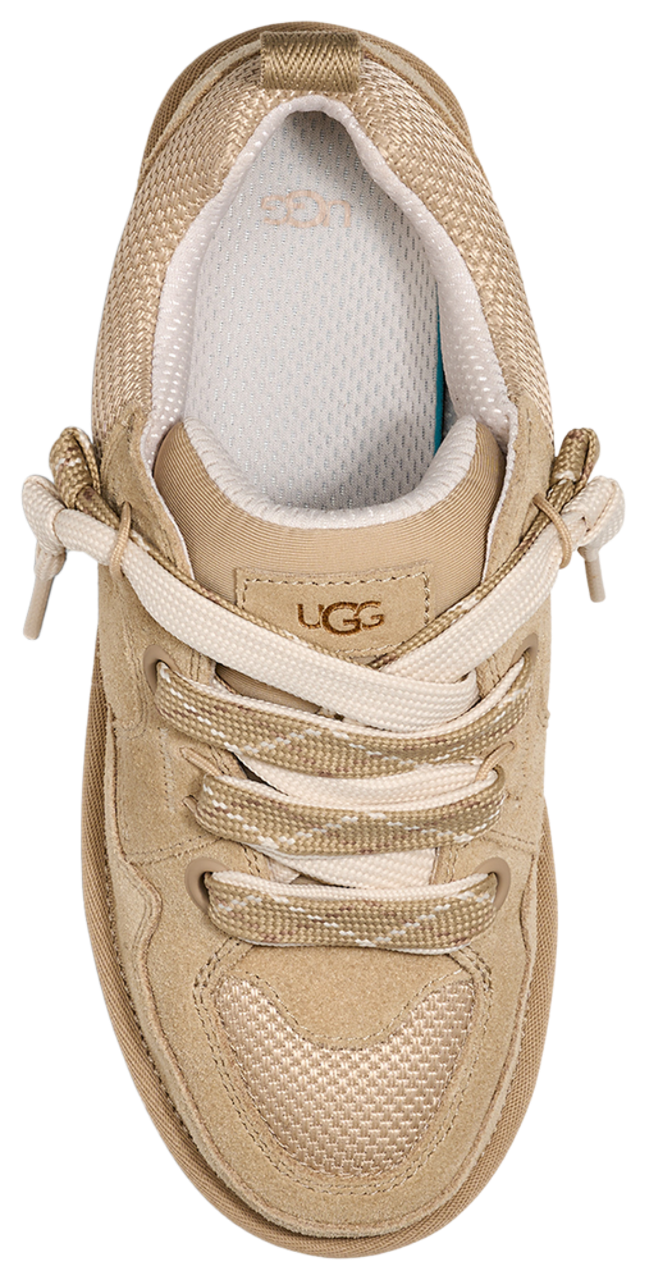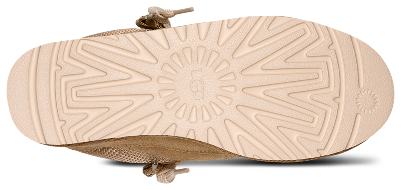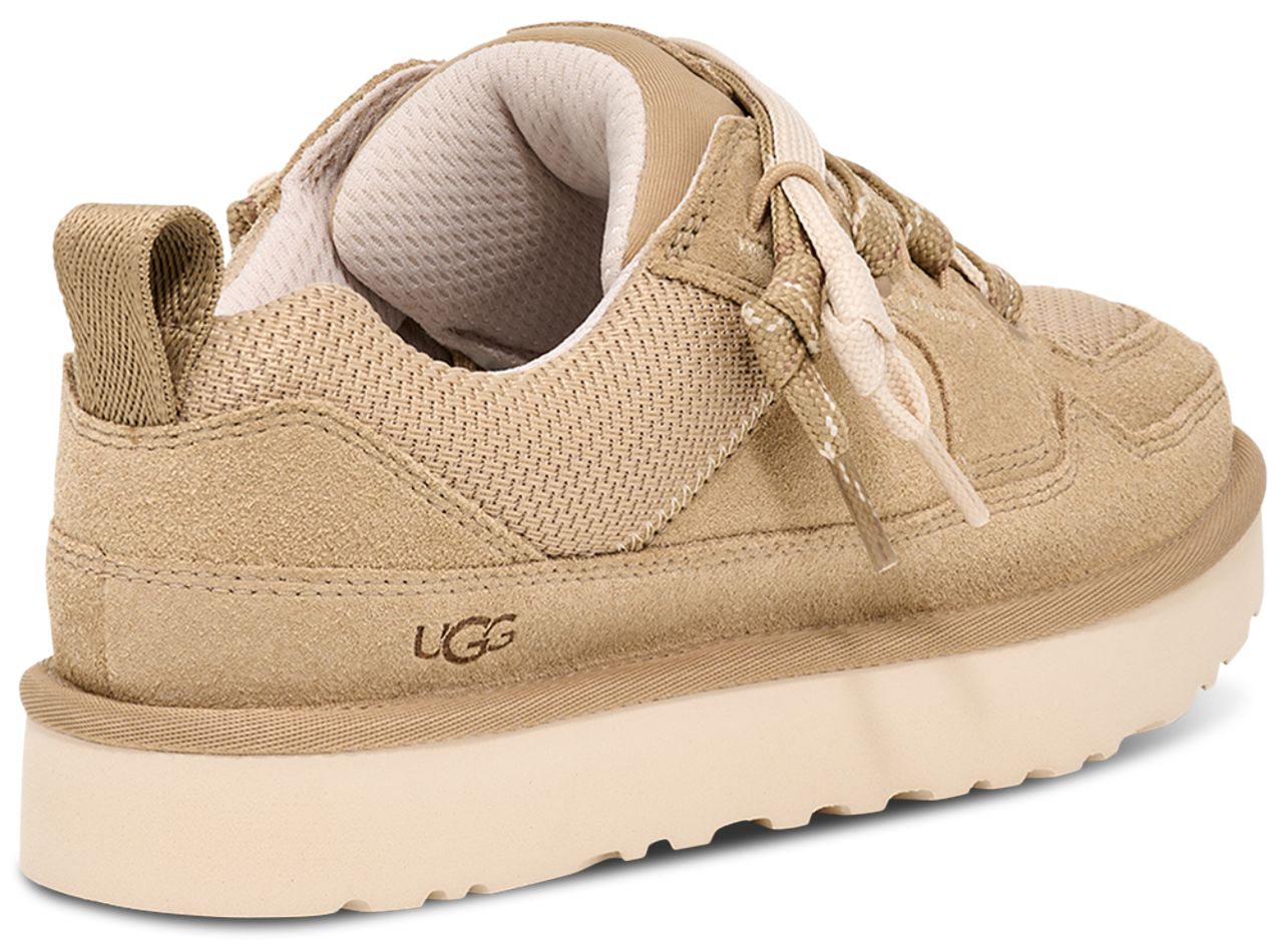 Slip into the UGG Lo Lomel and rock that laid-back, luxe look. Combining the ease of a sneaker and the comfort of a slipper, these shoes are all about bringing good vibes your way. Featuring an upper made with a textured mix of genuine suede and recycled ballistic canvas mesh, these low-profile silhouettes offer quintessential sneaker style with a dash of sustainability for all-day wear. The polyester mesh lining (55% coffee charcoal modified polyester and 45% regular polyester) improves moisture management, while the EVA footbed provides the signature UGG comfort. Step into a world of plush comfort and chic style with the UGG Lo Lomel.